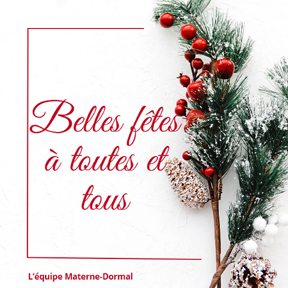 Enfin, toute l’équipe de la SRL Materne Dormal vous souhaite de passer de très belles fêtes de fin d’année.