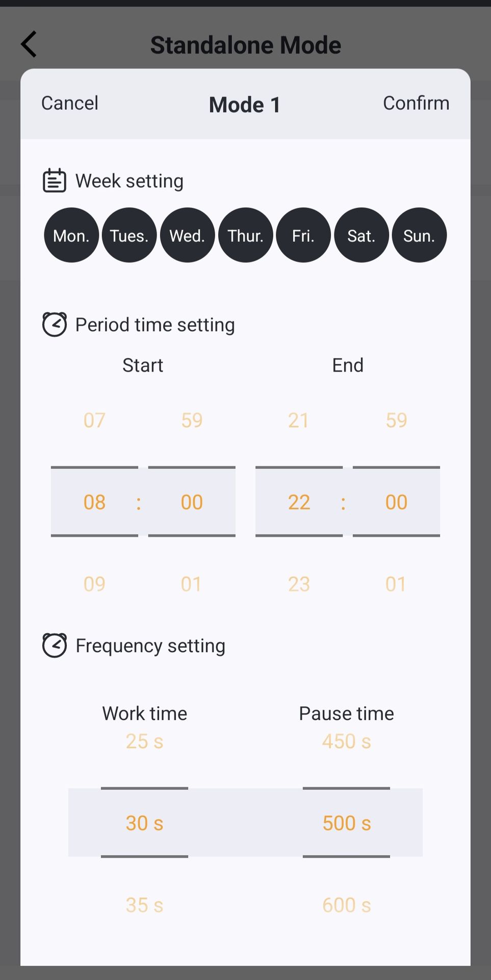 Possibilité de sélectionner les jours et plages horaires de fonctionnement.